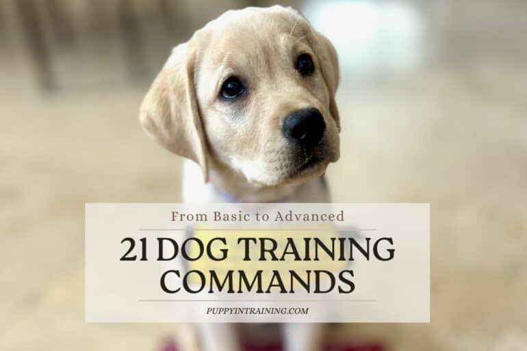 These are 21 dog training commands we like to teach most of our dogs and puppies.