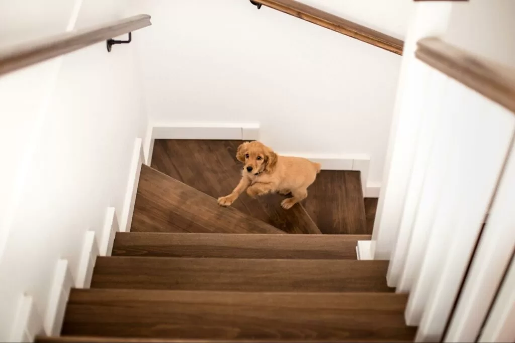 - Stairs: Carpeted stairs work best so your canine can have traction. Stairs are the perfect built-in obstacle in your home to get your furry friend’s blood pumping.
